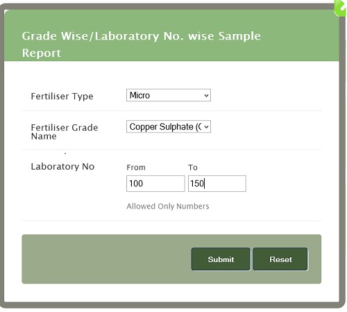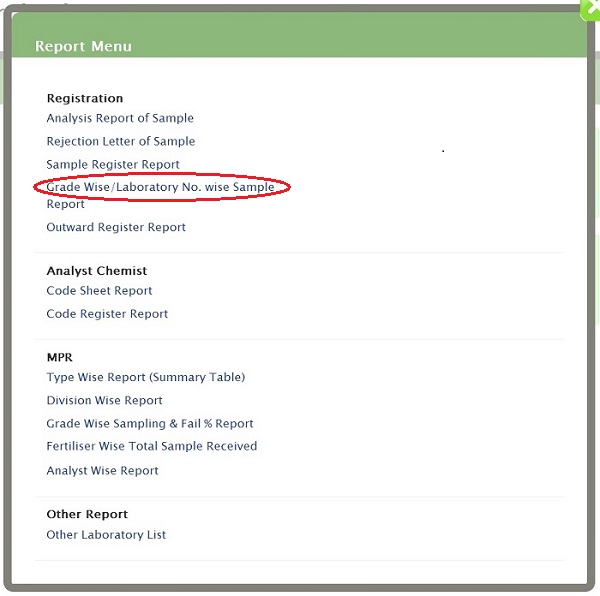 You will get Grade Wise/Laboratory No. wise Sample Report