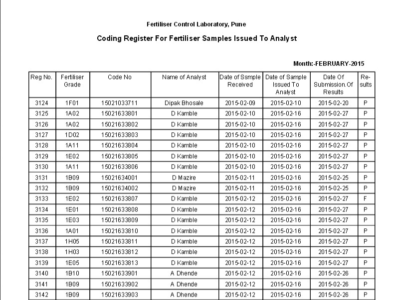 Code Register Report