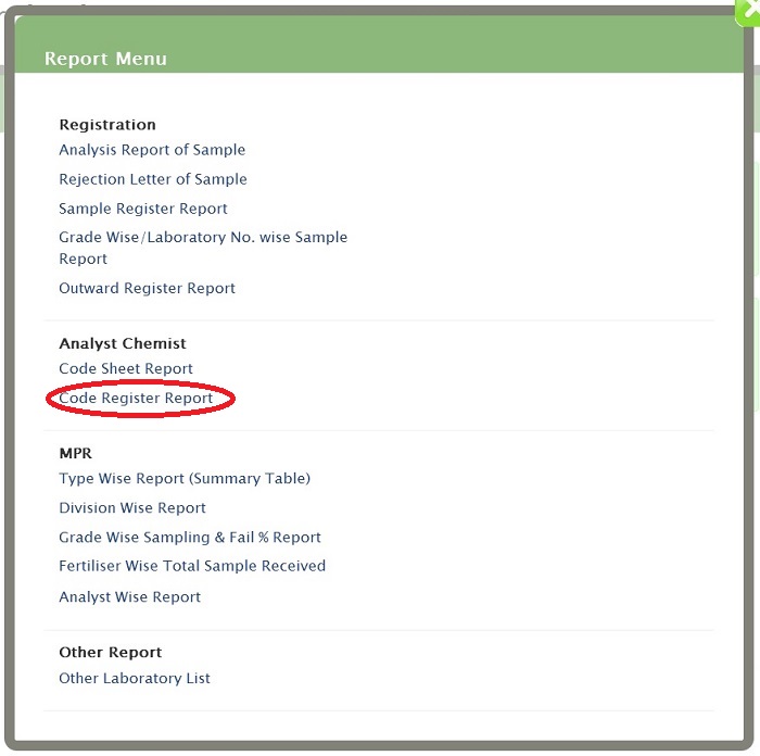 You will get Code Register Reportt form