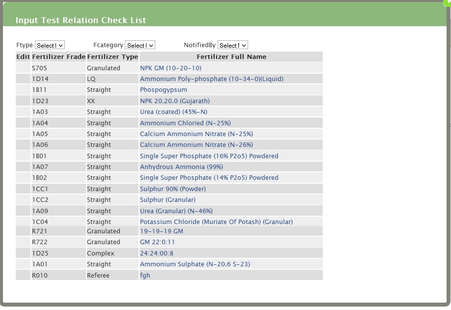 Click on Fertiliser Grade Help Link which is present on eLab User Menu