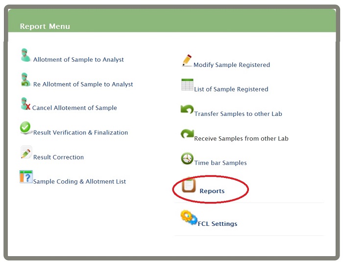 Click on ' Reports ' link present on eLab User Menu (as shown)