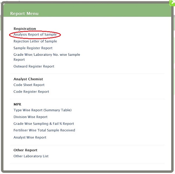 You will get Analysis Report menu form