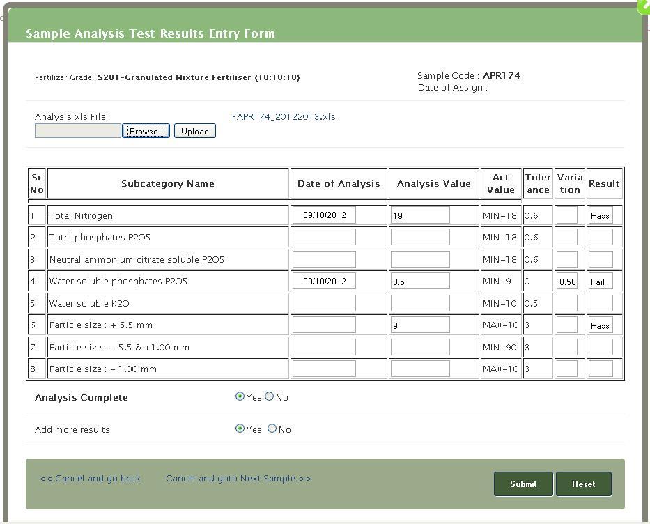 Analysis xls file-Upload sample results in the system using Excel Files (if available)