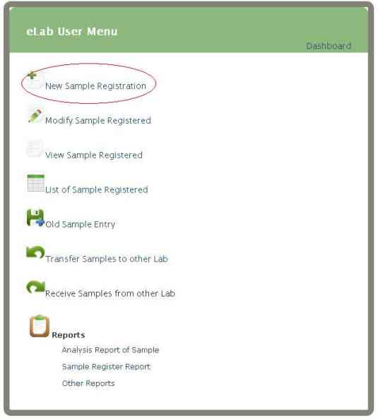 Click on 'New Sample Registration' shown in red circle