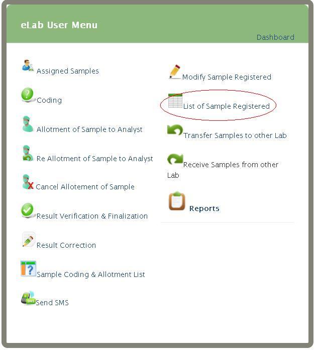 You can also search individually by Sample type/Lab no/received date/Sample code/District name/Taluka Name/